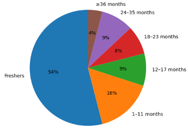This chart represents the work experience profile of students who participated in the summer placement process, highlighting FMS Delhi’s strong mix of freshers and experienced candidates.