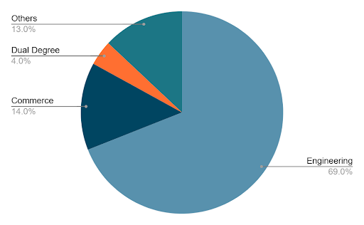 IIM Calcutta's MBA programme attracts students from diverse academic backgrounds, creating a balanced classroom environment that encourages varied perspectives and peer learning.