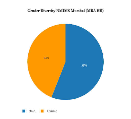 As seen below, this pie chart shows the gender diversity for the specialization in MBA & HR at NMIMS Mumbai.