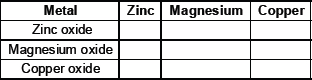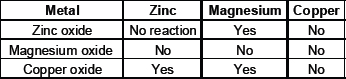 13. Metallic oxides of zinc, magnesium and copper were heated with the following metals.