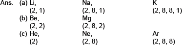 Ans. (a) Ne (2, 8) (b) Mg (2, 8, 2)