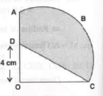 3.   In figure OABC is a quadrant of a circle of radius 7 cm. If OD = 4 cm, find the area of the shaded region.