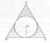 8.   In the figure, a circle is inscribed in an equilateral triangle ABC of side 12 cm. Find the radius of teh inscribed circle and the area of the shaded region. [Use π = 3.14 and = 1.73]
