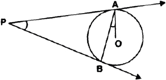 2.   In the following figure, PA and PB are tangents drawn from a point P to the circle with centre O. If ∠APB = 60°, then what is ∠AOB?