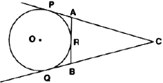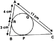 3.   In the figure, CP and CQ are tangents to a circle with centre O. ARB is another tangent touching the circle at R. If QC = 11 cm, BC = 7 cm then find, teh length of BR.