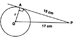6.   From a point P, the length of the tangent to a circle is 15 cm and distance of P from the centre of the circle is 17 cm, then what is the radius of the circle?