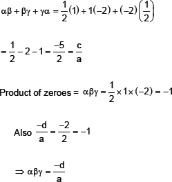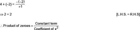 Thus, the relationship between the zeroes and the co-efficients of p(x) is verified.
