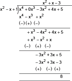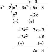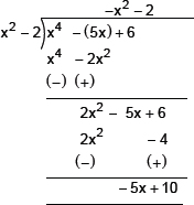 Thus, the quotient = –x2 – 2 and remainder = –5x + 10.