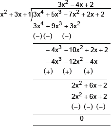 ∴ x2 + 3x + 1 is a factor of 3x4 + 5x3 – 7x2 + 2x + 2.