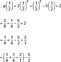 p(1) = 2(1)3 + (1)2 – 5(1) + 2