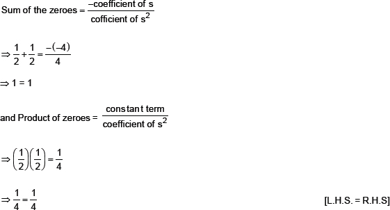 Thus, the relationship between the zeroes and coefficients in the polynomial 4s2 – 4s + 1 is verified.