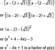 Now, dividing p (x) by x2 – 4x + 1, we have: