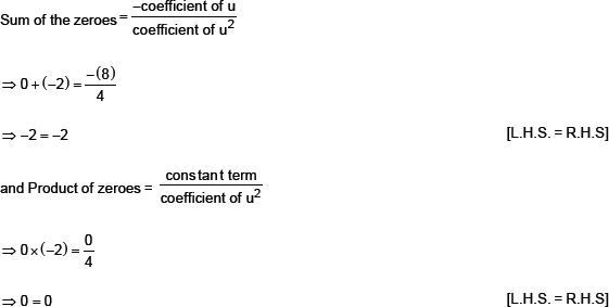 Thus, the relationship between the zeroes and the coefficients in the polynomial 4u2 + 8u is verified.