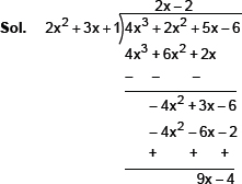 ∴ Quotient is 2x – 2 and remainder is 9x – 4.