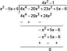 ∴ 4x4 – 20x3 + 23x2 + 5x – 6