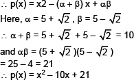 ⇒ p(x) = x2 – (sum of roots) x + product of roots