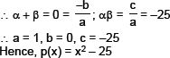 Now product of zeroes = αβ = 5 × (–5) = –25