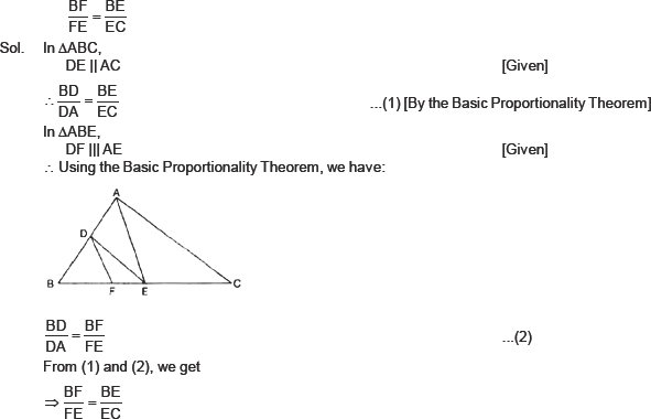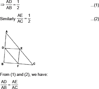 Sol. We Have a ΔABC in which D is the mid point of AB and E is a point on AC such that