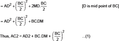 ⇒ AC2 = AB2 + BC2 + 2BC BD [From (1)]