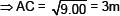 ⇒ AC2 = 5.76 + 3.24 = 9.00