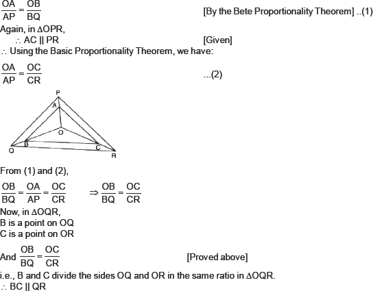 O is a point and 0Q,- OR and joined. We have A, B and C on OP, OQ. and OR respectively such that AB || PQ and AC || OR.