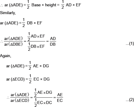 Since, ΔDBE and ΔECD being on the same base DE and between the same parallel DE and BC,