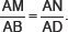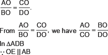 i.e., the points 0 and E on the sides AB and AC (of ΔADB) respectively in the same ratio.