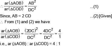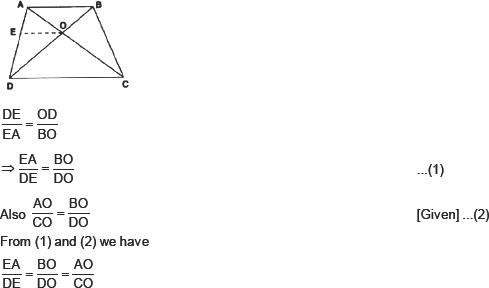 Sol. We have, a trapezium ABCD such that AB || DC. The diago as AC and BD intersect each other at O.