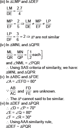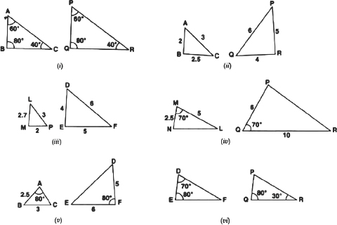 1. State which pairs of triangles in the figures, are similar. Write the similarity criteria used by you for answering the question and also write the pairs of similaltfriangles in the symbolic form: