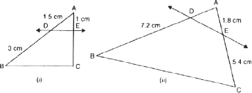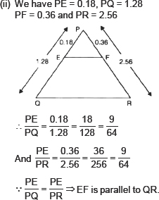 (ii) PE = 4 cm, QE = 4.5 cm, PF = 8 cm and RF = 9 cm