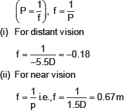 Q5. A person needs a lens of power �5.5 dioptres for correcting his distant vision. For correcting his near vision he needs ae s of power +1.5 dioptre. What i the focal length of the lens required for correcting (i) distant vision, and (ii) near viion?