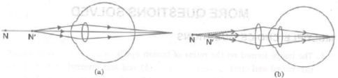 (a) The hyperinetropic eye, and (b) correction for hypermetropia with a convex lens