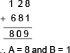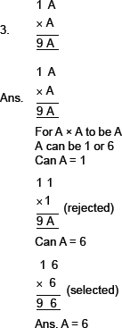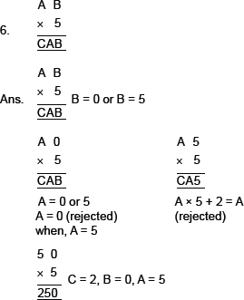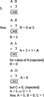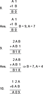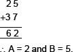 Ans. There are two letters whose values are to be found out. Study the addition in the ones column, i.e., from A + 5 we get 2, i.e., the number whose ones digit is 2.