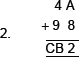 Now, study the addition in the ones column : from 8 + B we get 9. For this to happen, we must have B = 1. Therefore, the puzzle has been decoded as