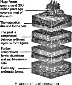 Carbonisation: The chemical process involved in the transformation of punt matter into coal is called the carbonisation of plant matter.