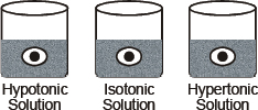 If the medium has exactly the same water concentration as the cell, there will be no net movement of water across the cell membrane. Such a solution is known as isotonic solution. If the medium has a lower water concentration then the cell will lose water by osmosis. Such a solution is known as hypertonic solution.