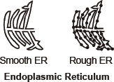 There are two types of ER-Rough endoplasmic reticulum [RER] and smooth endoplasmic reticulum [SER]. RER has particles called ribosomes attached to its surface. The ribosomes are the sites of protein manufacture.