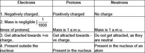Q1. Compare the properties of electrons, protons and neutrons.