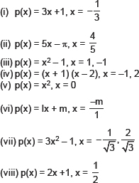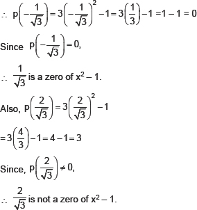 ∴ p(1) = (1)2 – 1 = 1 – 1 = 0