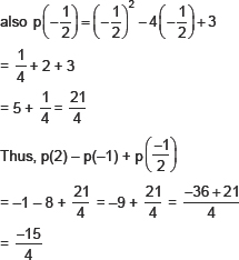 ∴ p(–1) = 5(–1) – 4(–1)2 + 3 = – 5 – 4(1) + 3