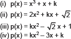 p(2) = 2 + 2 + 2(2)2 – (2)3 = 2 + 2 + 8 – 8 = 4 (iii) p(x) = x3