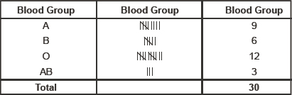 1.   The blood groups of 30 students of Class VIII are recorded as follows: