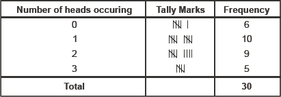 6.   Three coins were tossed 30 times simultaneously. Each time the number of heads occurring was noted down as follows:
