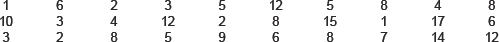 A, AB, O, A, A, O, O, AB, B, A, O, B, A, B, O.