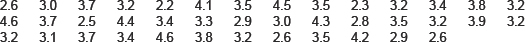 Construct a grouped frequency distribution table for this data, using class intervals of size 0.5 starting from the interval 2 – 2.5.