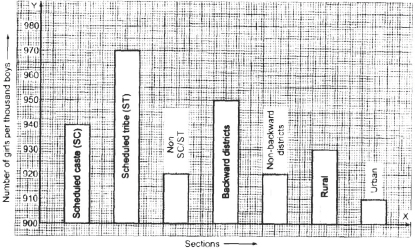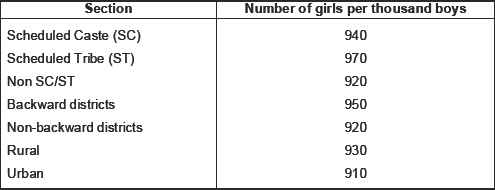 (ii) (a) Number of girls (per thousand boys) are maximum in scheduled tribes whereas