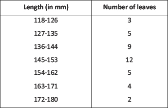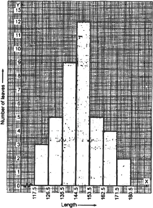 4.   The length of 40 leaves of a plant are measured correct to one millimetre, and the obtained data is represented in the following table: