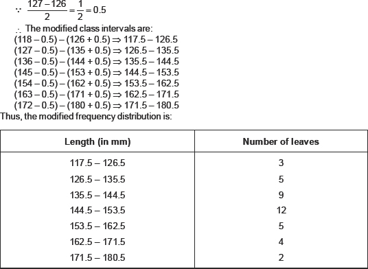 Note: The given class intervals are not continuous. Therefore, we first modify the distribution as continuous.