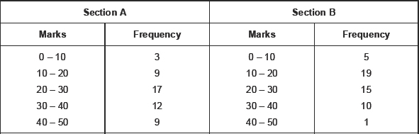 6.   The following table gives the distribution of students of two sections according to the marks obtained by them: