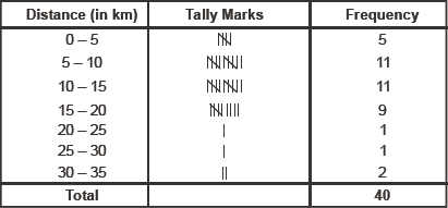 (i) Frequencies of class interval 5 – 10 and 10 – 15 are equal, i.e. 11 each. It shows that maximum number of engineers have their residences at 5 to 15 km away from their work place.